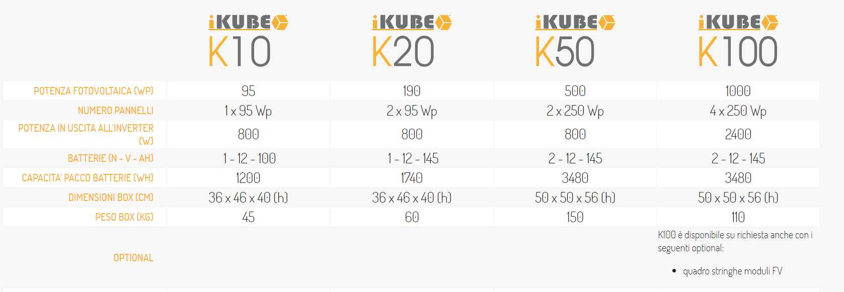 I generatori fotovoltaici stand-alone K Series sono stati concepiti per avere energia pulita, in caso di applicazioni con consumi energetici medio-bassi.